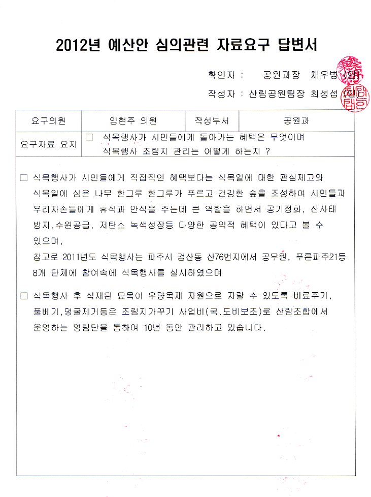 식목에 대해서 의문가는 것이 있어서 나무구입 등등해서 식목일 행사관련한 내용에 대해서 자료 입수해서 숙지하고 싶었는데 제출 안됐습니다.