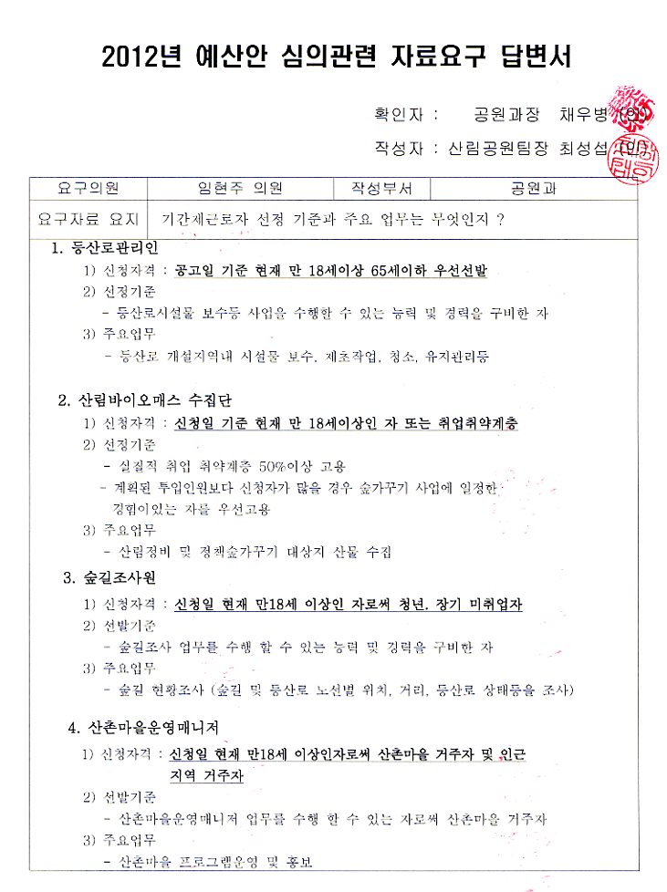 그렇기 때문에 아까 요청드린 자료에 대해서 검토해서 다만 저희 시가 국가사업에 대해서 집행할 수밖에 없는 예산에 대해서 저희 의회가 한번 더 감시하고 그것에 대한 역할을 의견을 나누는데 있어서의 협력관계가 될 수 있도록 충분히 검토될 수 있는 자료를 마련해 주실 것을 주문드립니다.