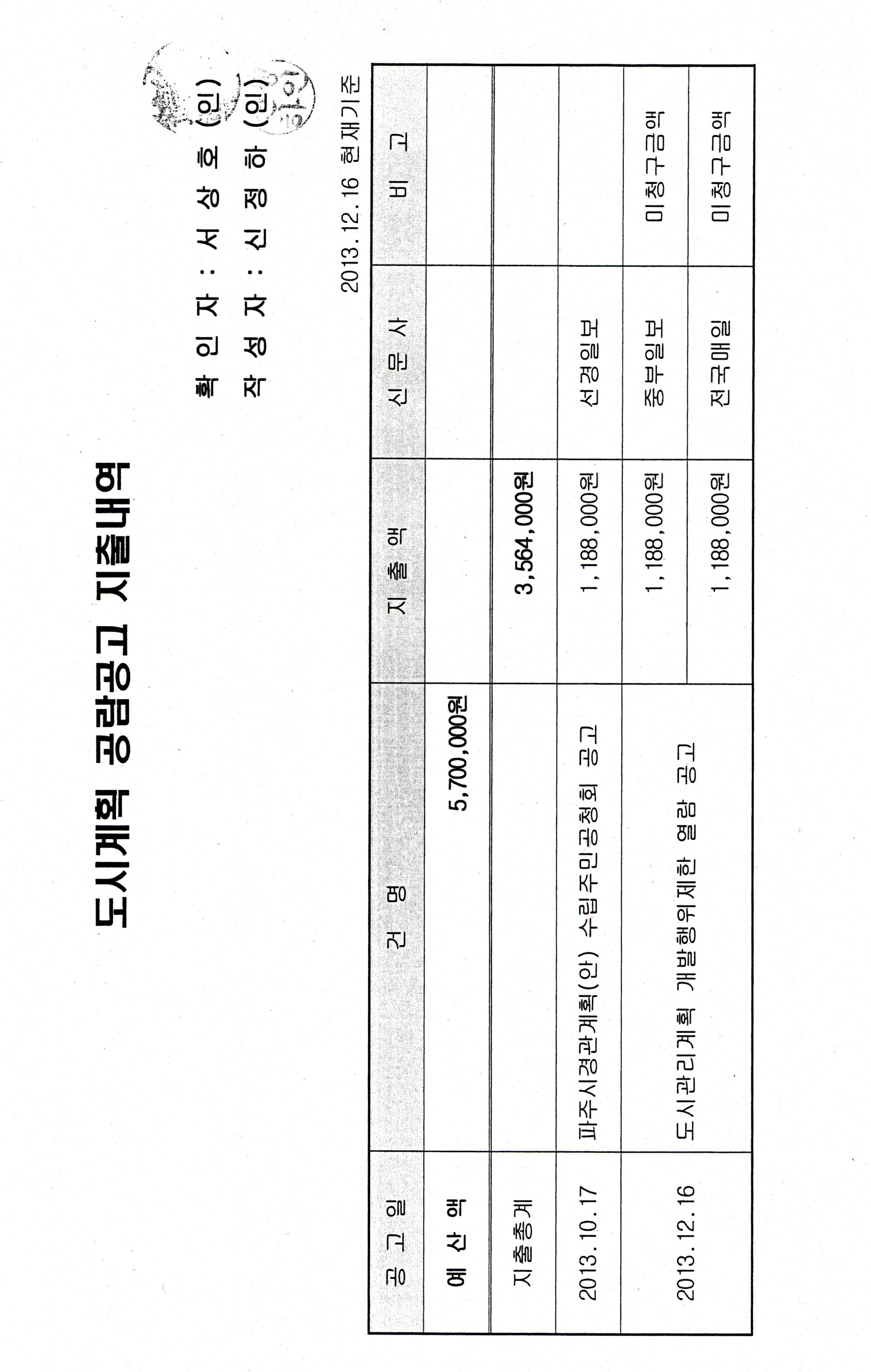 관련해서 올해도 도시계획 공람공고료 집행결과에 대해서 서면답변해 주시기 바랍니다.
